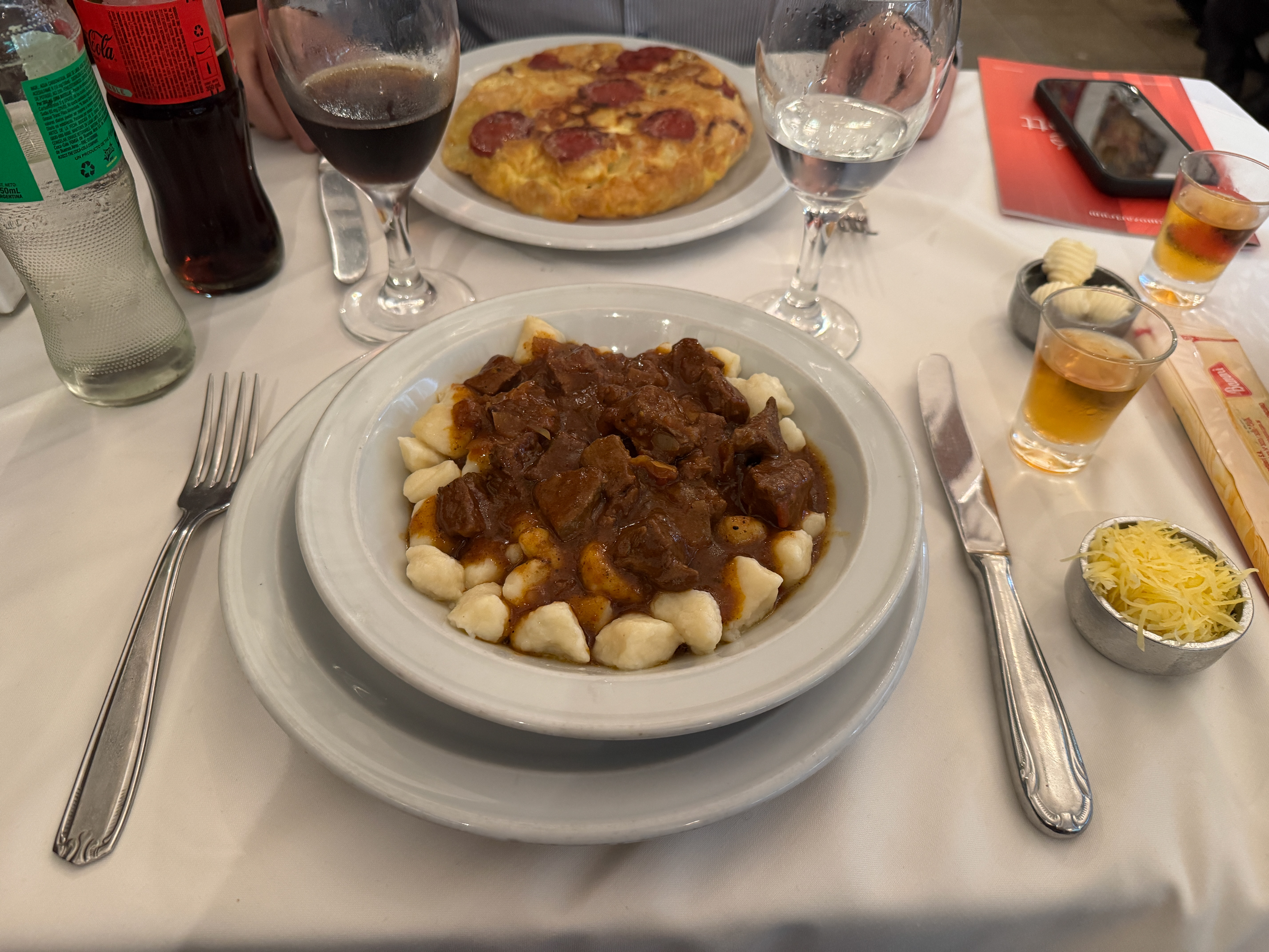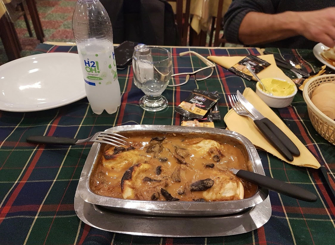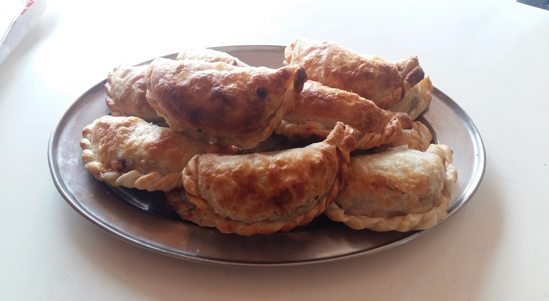 marche una porción de sorrentinos jamón y queso con salsa rosa